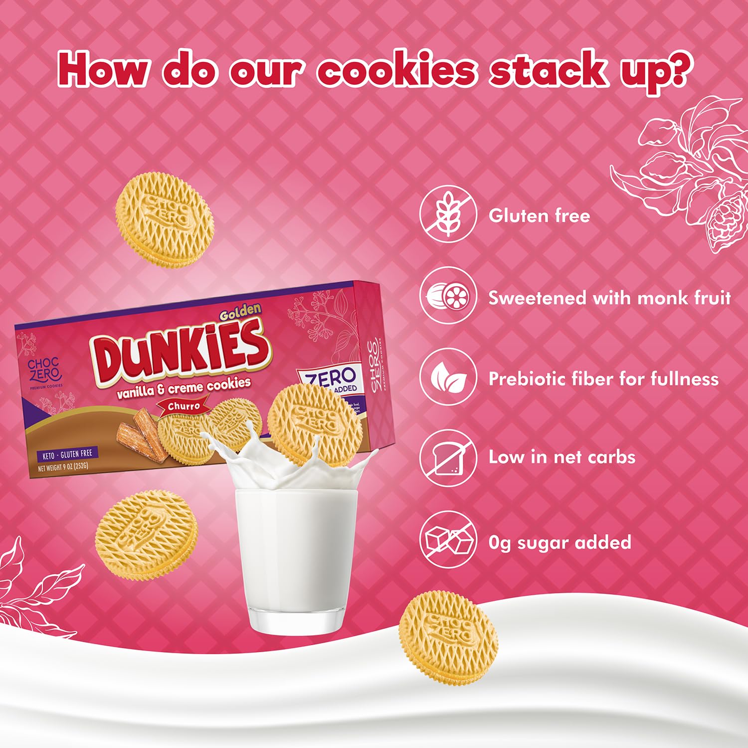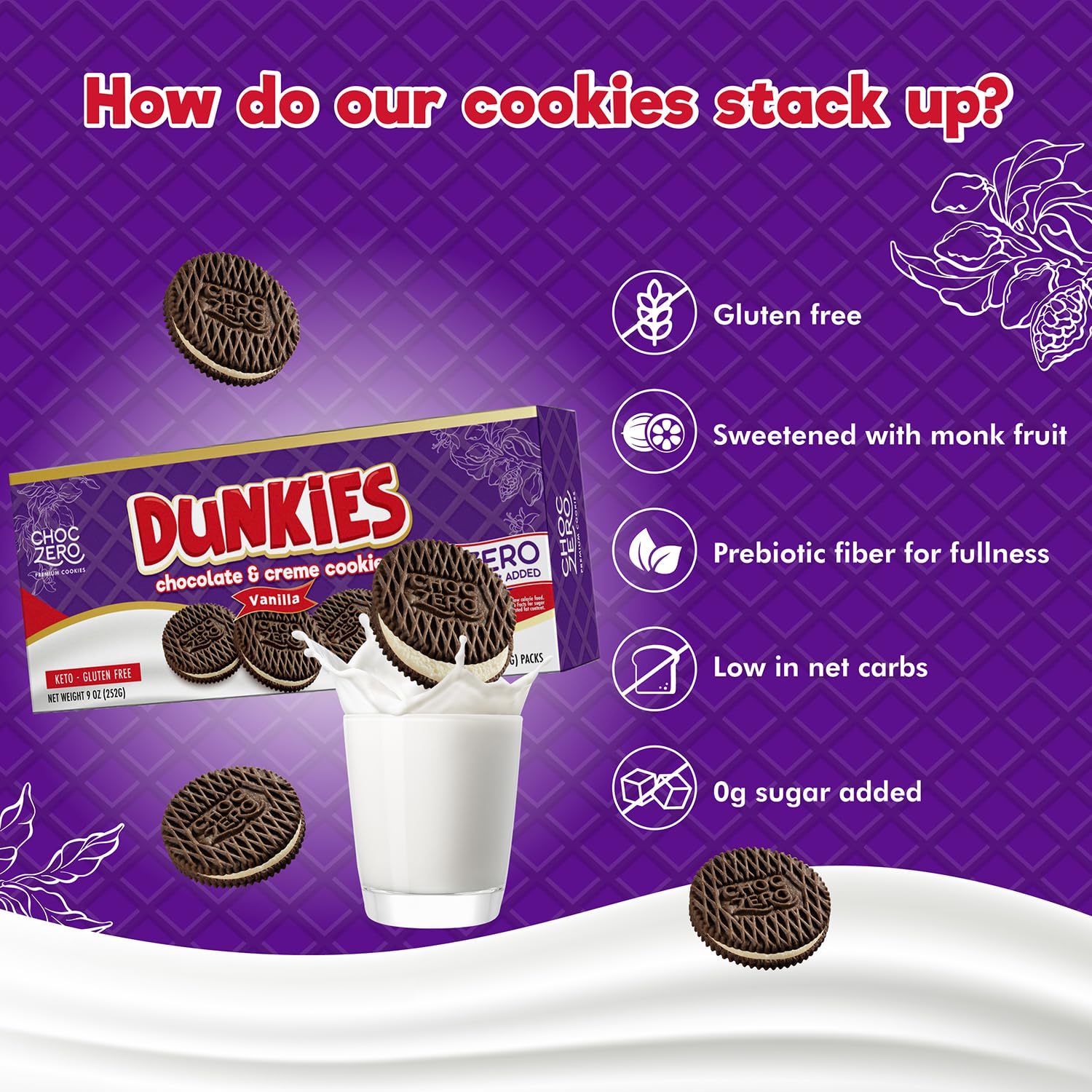ChocZero Keto Chocolate Sandwich Cookies with Creme - Low Sugar Gluten Free Dunkies (1 Box, 9oz)